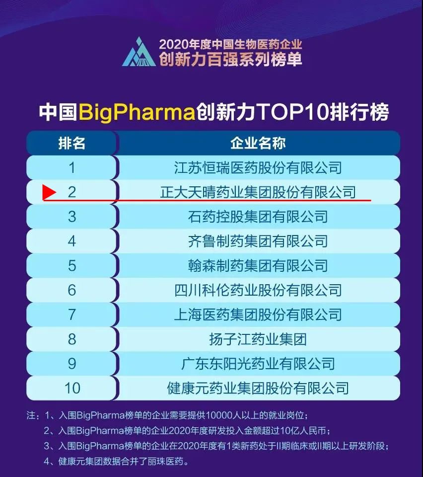 9月26日,苏州金鸡湖国际会议中心,由米内网主办的“2020年度中国生物医药企业创新力百强系列榜单”发布会在第六届中国医药创新与投资大会期间隆重举行,《2020年度中国生物医药企业创新力百强系列榜单》在此盛大发布。中国生物制药旗下的正大天晴药业集团股份有限公司荣获“中国BigPharma创新力TOP10排行榜” 第二名。