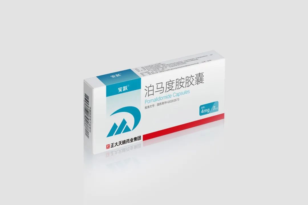 泊马度胺是中国首个上市的第三代免疫调节剂(IMiDs),被批准用于复发难治的多发性骨髓瘤,同时在淋巴瘤、淀粉样变性、骨髓纤维化、卡波西肉瘤等疾病的治疗方面也有诸多探索。泊马度胺通过直接抗骨髓瘤活性、微环境抑制和免疫调节等多重机制发挥抗骨髓瘤作用。目前,该产品已被国内外权威指南推荐作为复发难治多发性骨髓瘤(RRMM)治疗的骨架药物、一类推荐;同时,多个权威指南推荐含泊马度胺的三药方案(如PVd方案等)用于首次复发的骨髓瘤。