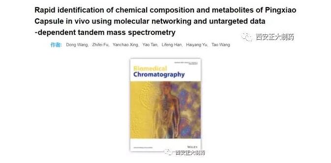 近日,天津医科大学肿瘤医院、天津中医药大学王冬等在国际知名药学期刊Biomedical Chromatography2020年第9期发表了文章“利用分子网络和非靶向数据依赖的串联质谱法快速分析平消胶囊的化学成份和体内代谢产物”,在平消胶囊中首次鉴定了89个生物碱类、黄酮类、有机酸类和酚类化合物的峰,并快速确认了15个被吸收的原型化合物及其代谢产物,确定葡萄糖醛酸化、氧化、甲基化和羟基化是该药物活性成分体内代谢的主要途径。