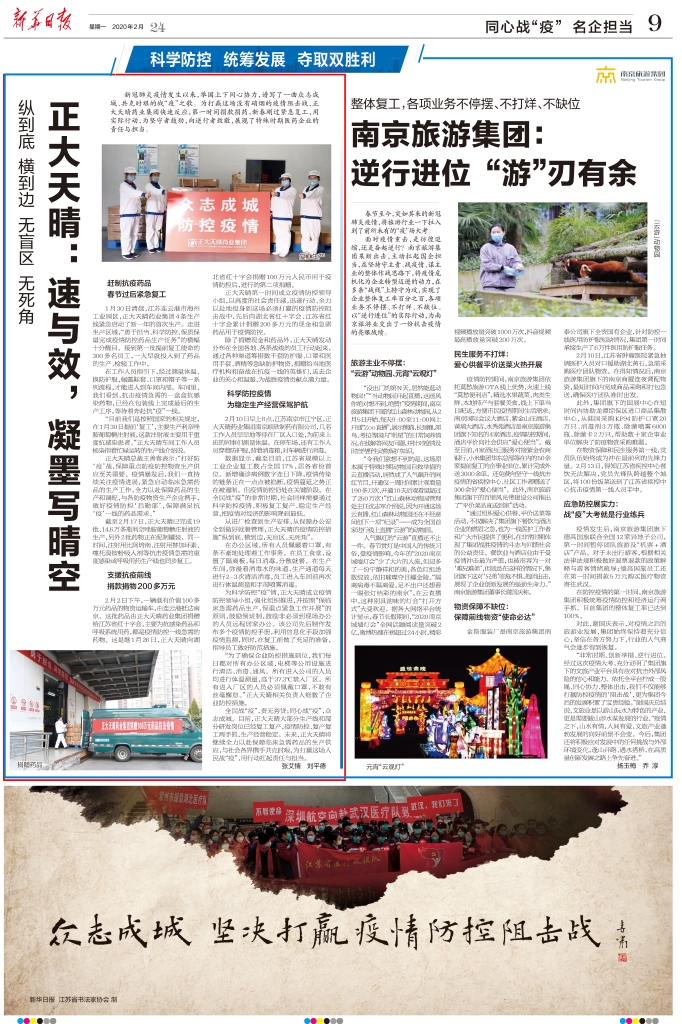 数据显示,截至目前,江苏省规模以上工业企业复工数占全国17%,居各省份首位。新增确诊病例数字连日下降,疫情传染的链条正在一点点被掐断,疫情蔓延之势正在被遏制。但疫情防控仍处在关键阶段。在全民战“疫”的非常时期,社会同样需要通过科学防控疫情、积极复工复产、稳定生产经营,把疫情对经济的影响降到最低。